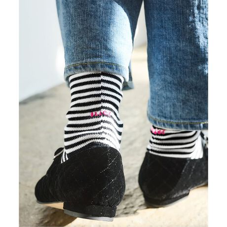 かかとに入った「BLACK」のロゴがアクセントのソックス。