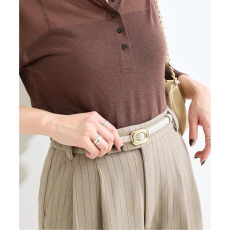 バックルがアクセントになる華奢な印象の細身ベルト。