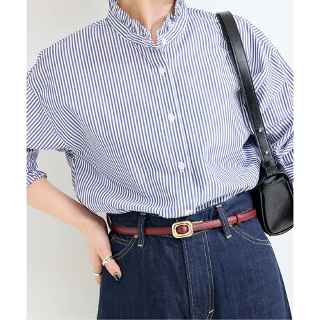上品なゴールドのバックルが、コーディネートに女性らしいアクセントをプラスします。ワンピースやロングシャツのウエストマークにも最適で、オフィスからデイリーまで幅広く活躍するアイテムです。