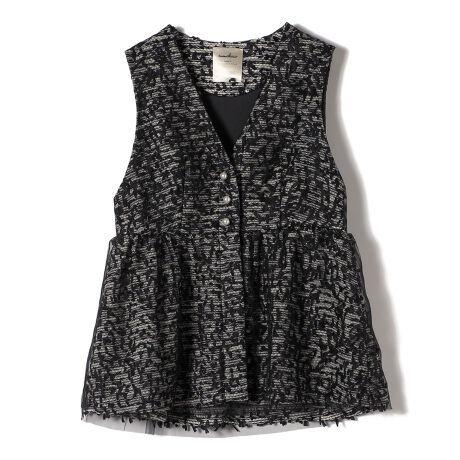 意匠感のあるツイードに繊細なチュールを重ねたジレ。
