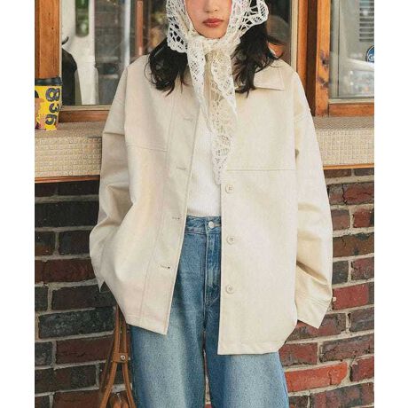 程よいゆとりのあるシルエットと、マットな質感のフェイクレザーがこなれ感を演出し、かっちりしすぎず軽やかな印象に仕上がります。