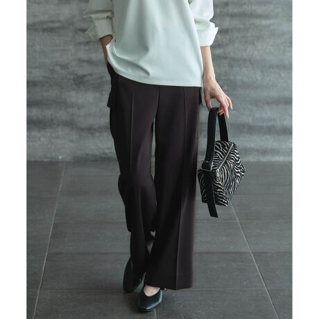 ■デザインシルクライクな光沢感のある素材で仕立てたきれい目カーゴパンツです。アウトポケット位置をやや上めに設定することでカジュアルな印象を軽減しました。きれい目トップスやジャケットスタイリングなどにも合わせやすく、ON/OFF活躍します。ウエスト後ろ部分にゴムを内蔵したスマートバック仕様のため穿き心地がラクなのも嬉しいポイントです。