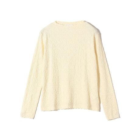 綿混でソフトなタッチに仕上げ、幅広いシーズンで着用可能な素材。凹凸感が特徴的な生地。