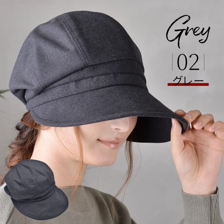 秋冬にも紫外線対策を怠らず、つば広キャスケットを被ってお肌のケアを。