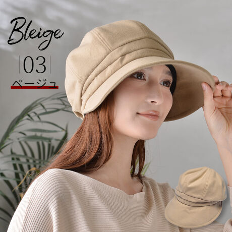 秋冬にも紫外線対策を怠らず、つば広キャスケットを被ってお肌のケアを。