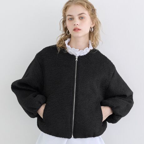 くるんとしたカーリーなボア素材が季節感たっぷりのブルゾン。