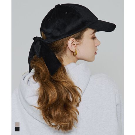 バックリボンが大人可愛い、ベロアリボンキャップ