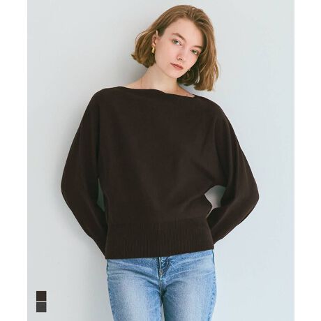 ボートネックで首元をすっきり見せ、女性らしい抜け感をプラス。