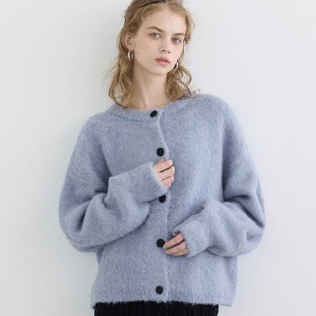 ふんわり柔らか、抜け感を演出するブラッシュドブークレカーディガン