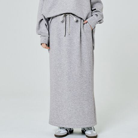 やわらかな落ち感のIラインシルエットで、楽なのにすっきり見えるロングスカート。