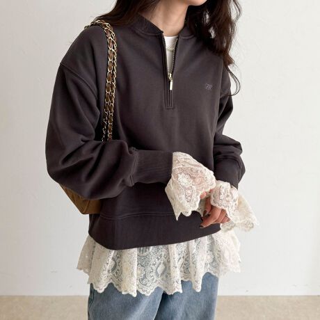 ・ジップを開けて抜け感を出したり、閉めてスウェット風に着たりとアレンジも楽しめます