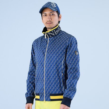 ラグジュアリーなデザインと機能性を兼ね備えた、Nissa Golfのモノグラムブルゾン。ブランドのアイコン「23」と「NS」をモチーフにしたモノグラム柄を、日本の伝統織物産地・米沢で繊細に織り上げ、奥行きと高級感のある仕上がりに。プリントでは表現できない上品なテクスチャーが、ゴルフシーンでもタウンユースでも洗練された印象を与えます。