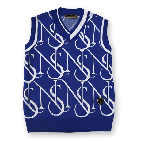 大胆なデザインと上質な快適性を兼ね備えたNissa Golfのモノグラムニットベスト。ブランドのアイデンティティを象徴する**「NS」モノグラム**を全面にあしらい、スポーティーでありながら洗練された雰囲気を演出します。