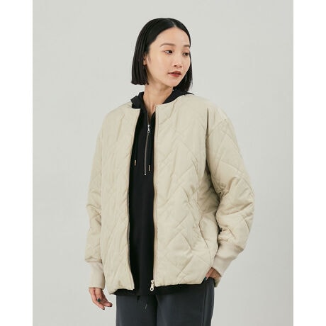 キルトデザインは幾何パターン使い、袖口のリブもポイントになっています。