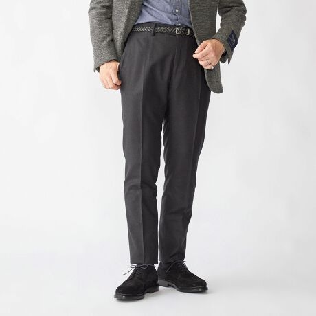流行に左右されず、硬派なビジネススタイルやジャケットスタイルにお使いいただけるスラックスです。