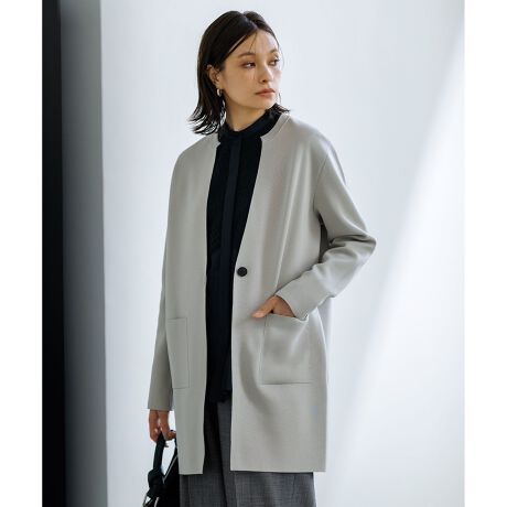 ■デザイン鎖骨映えするキーネックラインから、ストンと落ちる縦ラインが美しいロング羽織り。カーディガン以上コート未満の肉感と大きすぎないサイズ感で、薄手のカーディガンの上にも、コートの中にも着ていただける汎用性の高いアイテムです。パッチポケットもポイントになっており、エレガントな佇まいの中に実用性も兼ね備えた一枚に仕上げました。どんなボトムとも好相性なレングスで、様々なスタイリングに合わせられる万能な羽織りアイテムです。