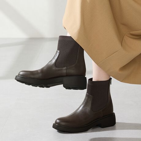 伸縮性のある柔らかなニット素材で足首周りのストレスフリーな履き心地を実現させたブーツ。