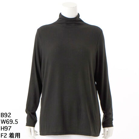 首元が高すぎず、ハイネックより高さ控えめですが、首元しっかり暖かく柔らかい肌触りで気持ち良い素材感が定評の素材。