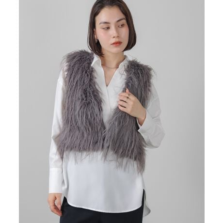 ふわっとした毛並みが印象的なポリエステルのファー調素材を使用。裏地付きなので滑りが良く、レイヤードしてももたつきにくい仕上がりです。長時間着ても疲れにくく、デイリーに取り入れやすい一着です。
