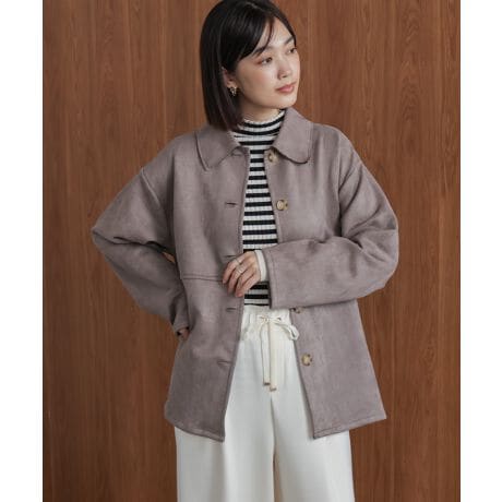しなやかに伸びるカットソー素材をスエード風に仕上げたジャケット。軽く羽織れて動きやすく、柔らかな肌ざわりが魅力です。ステンカラーのシンプルなデザインで、通勤にも休日のカジュアルスタイルにもマッチ。毎日のコーデに取り入れやすい万能アイテムです。
