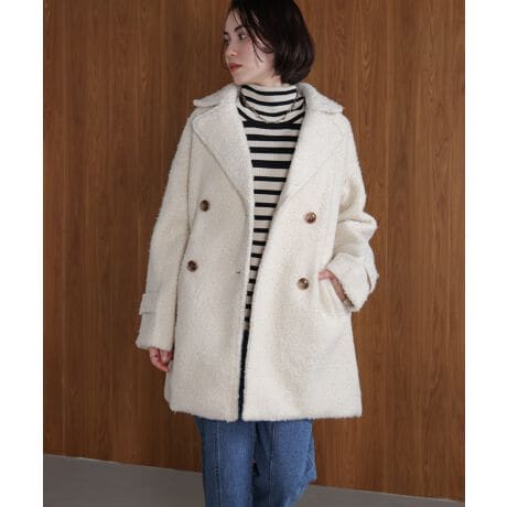 デザインはシンプルなピーコートを思わせるダブルコート。ゆとりのあるサイズ感で、ボリュームのあるトップスとも◎後ろの裾にベンツ開きを入れ女性らしい優しいフォルムも◎ボタンはナチュラルなカラーとマーブルが特徴なスコッチ釦を使用し、程よいカジュアルテイストをプラスしています。羽織るだけでこなれた雰囲気に。ヒップを程よくカバーしてくれる、長すぎない丈感はは通勤にも休日のお出かけにも活躍する、秋冬の万能アウターです。