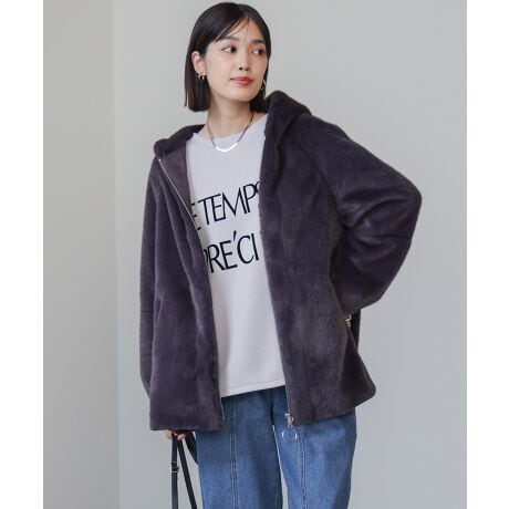 やわらかく艶やかなフェイクファーのフード付きコートが登場!