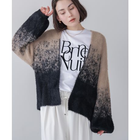 ふんわりとしたシャギー素材に、やさしく溶け合うグラデーションカラーが映えるニットカーディガン。
