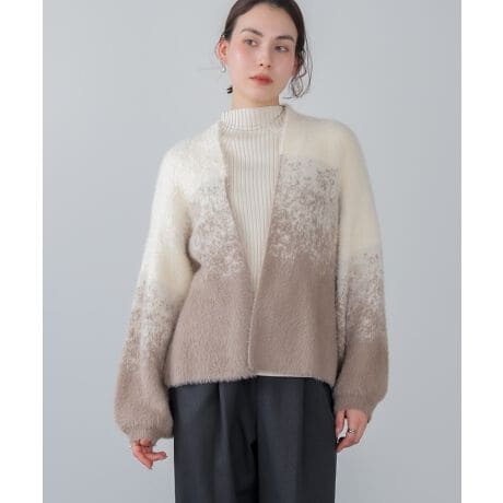 ふんわりとしたシャギー素材に、やさしく溶け合うグラデーションカラーが映えるニットカーディガン。