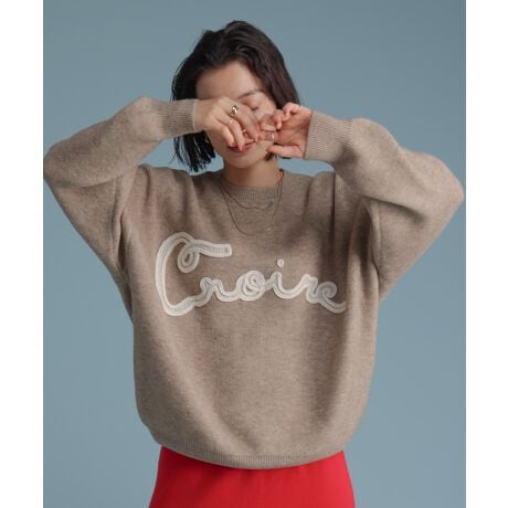 チュールロゴを刺繍で囲ったデザインロゴニット。ふんわりとした風合いのニットでオーバーサイズ感がカジュアルでこなれた雰囲気。