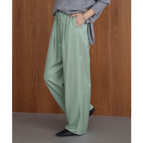 ウエスト周りは、オールゴムに、ダブルタックがあり、ゆったりしてるのに、ゆったりさを感じさせない生地の落ち感と柔らかさが、大人のスタイルにピッタリな一枚です。