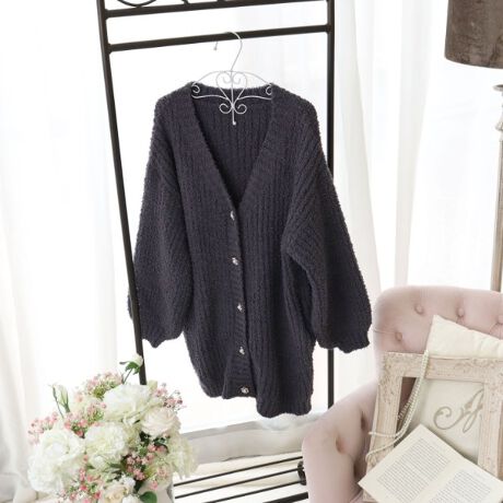 リブニット素材を使用した、リサマリのルームウェアシリーズです。腰回りをカバーしてくれる丈感とふんわりしたパフスリーブで、おうちでのリラックスタイムにおすすめしたいアイテムです。ラインストーンとパールがきらめくビジューボタンをあしらい、エレガントな印象をプラス。両サイドのポケットも、使いやすいワンポイントです。バック部分にはさりげなくリサマリロゴチャームをあしらいました。カラーはデイリーに使いやすいアイボリー、チャコール、ピンクの大人上品な3色で展開。他シリーズのランジェリーと組み合わせるなど、自分だけのコーディネートをお楽しみいただけます。