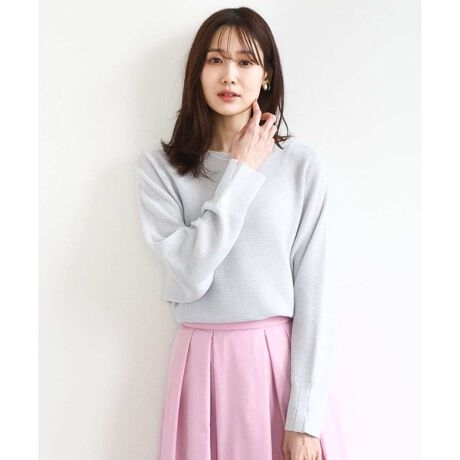 ニットの糸と同色のラメ糸を使用し、さりげないキラキラ感が上品なニット。肌離れの良いタッチは季節関係なく着こなしやすい肌ざわりです。