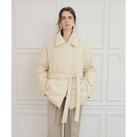 EMOELLEらしいダウンコートをイメージしながら、ダウンコートが苦手な方にもトライしていただけるようディティールを削ぎ落し、表はノーステッチでミニマムにまとめたデザイン。
