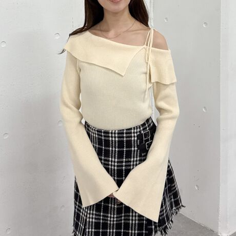 フレアスリーブとワンショルのあざとさ全開のニット。