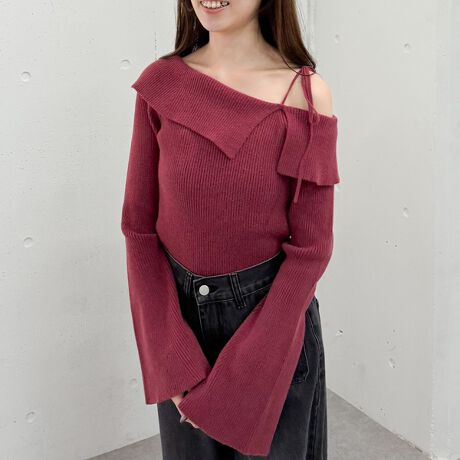 フレアスリーブとワンショルのあざとさ全開のニット。