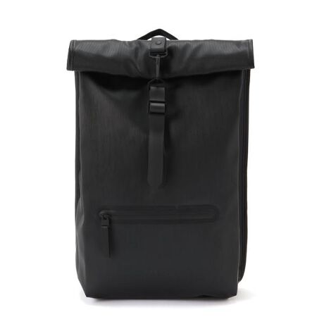 ロールトップ リュックサックは、Rains のシグネチャー PU 生地で作られており、強度、耐久性、滑らかな感触を実現しています。