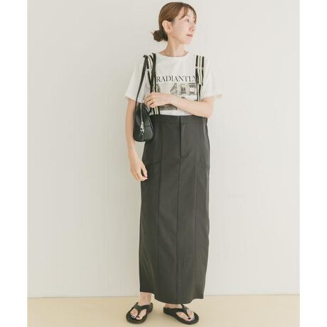 縦ラインがアクセントのツイル素材で仕立てたジャンパースカートは、伸縮性があり快適な着心地。サスペンダー部分は長さ調節ができ、どの位置でも表情豊かに着こなせます。きれいめにもカジュアルにも対応でき、インナー次第でシーズンレスに活躍する一枚です。