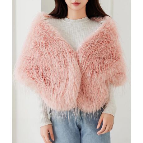贅沢なボリューム感のエコファーをあしらった、見た目にも華やかで温かみのあるレディースファーケープ。