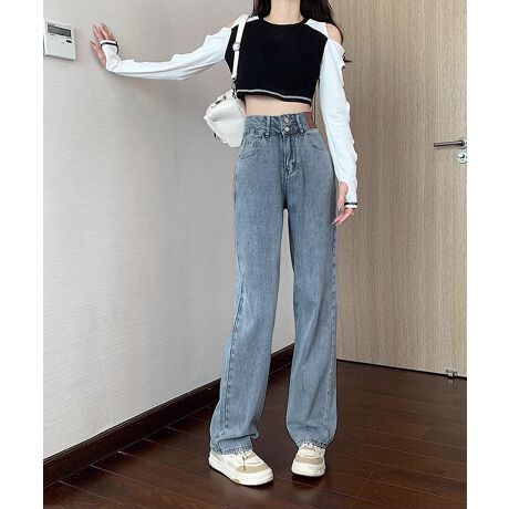 ハイウエスト デニムパンツ ダブルボタン