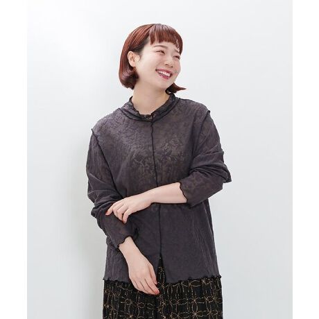 ぷっくりと浮き立つ花柄が美しい、カットソージャカード素材のロングスリーブインナーが登場。