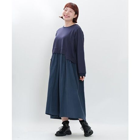 スカート部分には程よいハリ感のある布帛素材を採用し、たっぷりとギャザーを入れることで、ふんわりと広がる女性らしいシルエットに仕上げました。
