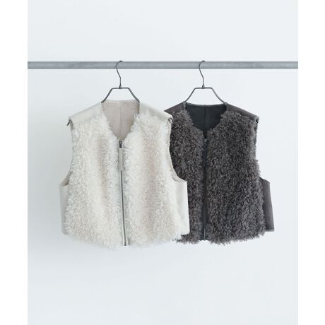 シーズンムード高まるプードルファーが目を惹くベスト。ファーと滑らかなスエード調生地を前後で切り替え、シンプルなアイテムに合わせるだけで奥行きのある着こなしが完成します。フロントファスナーがスタイリッシュなアクセントをプラス。洗練されたレイヤードスタイルに欠かせないおすすめのアイテムです。透け感[なし]