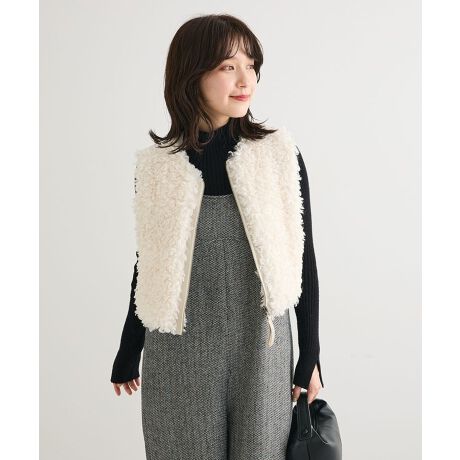 シーズンムード高まるプードルファーが目を惹くベスト。ファーと滑らかなスエード調生地を前後で切り替え、シンプルなアイテムに合わせるだけで奥行きのある着こなしが完成します。フロントファスナーがスタイリッシュなアクセントをプラス。洗練されたレイヤードスタイルに欠かせないおすすめのアイテムです。透け感[なし]