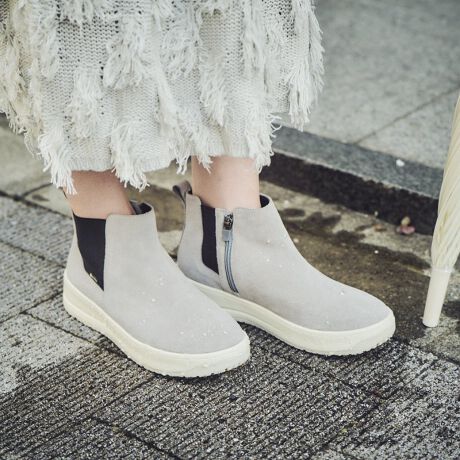 全体に厚みのある形状が特徴のプラットフォームソールを使用したサイドゴアシューズ。内側にはファスナーを配置し脱ぎ履きしやすい設計。シンプルなデザインで普段使いに重宝します。アウトソールには「ハイドロストッパースクラッチャー」を使用。濡れた路面や雪上でグリップ性を発揮します。