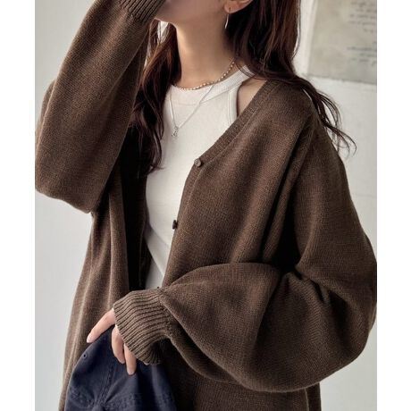 ゆったりとした落ち感のあるシルエットに、Vネックがすっきりとした印象を与えるカーディガンです。