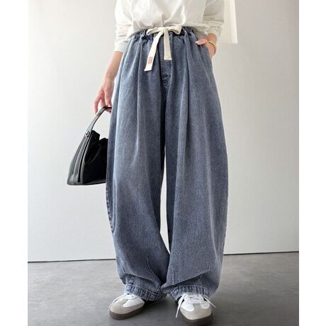 腰回りは程よくゆるく、裾に向かってすっきりまとまるデザインです。