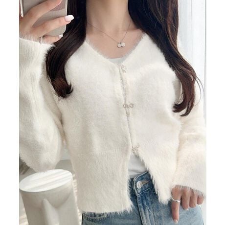 毛足のあるシャギーニットを使用したショート丈カーディガン。