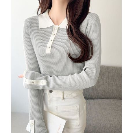 この季節に大活躍のリブ編みバイカラーポロニット。