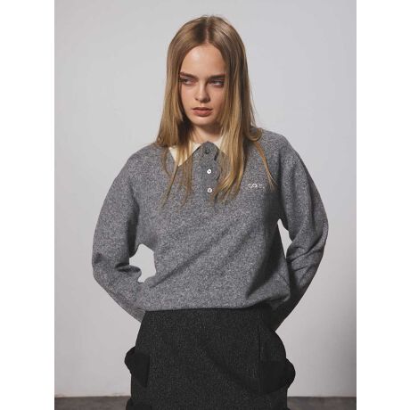 暖かみのあるニット素材で作ったポロニットは、フロントがスカラップになっているのがポイント。