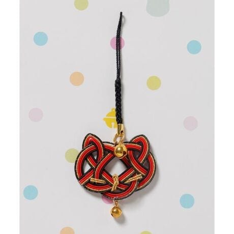 [型番:7PZZ5303-2025]猫の顔を縁起の良い水引で表現したストラップ。首輪をイメージした鈴がアクセント。それぞれの色に願いを込めて、お守りとして身に付けたり、贈り物としてもおすすめ。